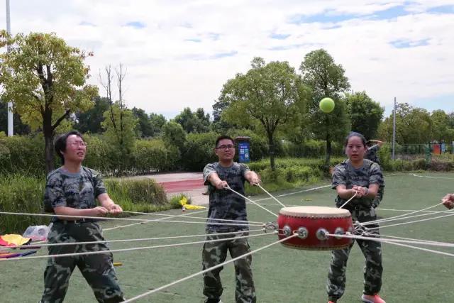 今天的拓展活動有四項(xiàng)內(nèi)容,所有的學(xué)員分成三個組,大家選出了自己心目中隊(duì)長和副隊(duì)長,一隊(duì)精英隊(duì),二隊(duì)輝煌隊(duì),三隊(duì)是戰(zhàn)狼隊(duì),一個個響亮的隊(duì)名,一個個錚錚的口號,大家士氣倍增,干勁倍足。在150秒內(nèi)完成四個挑戰(zhàn)項(xiàng)目,這是很好的檢驗(yàn)團(tuán)隊(duì)力量的項(xiàng)目。擊鼓顛球,多人拽繩拉鼓,小球在鼓上顛球不少于8個,活動才算通過,否則球落地重新開始。這檢驗(yàn)的是團(tuán)隊(duì)的平衡力和配合協(xié)作力。第二個項(xiàng)目就是隊(duì)員手拉手,套繩從每個人身上傳過,手不允許松開,考驗(yàn)的是隊(duì)友之間的配合默契度。第三個項(xiàng)目是巧運(yùn)乒乓球,每個隊(duì)員手里拿著一個塑料小槽,球在小槽里流動,大家一個一個的接籠,不允許落地,否則重新開始。Zui后一個項(xiàng)目是大家站成圓形,分別向左右隊(duì)員背部擊掌,說出一個字擊一掌,說出兩個字擊兩掌,大家必須整齊劃一,Zui后左右擊八次掌喊出“我們是Zui棒的團(tuán)隊(duì)”這個口號,如果團(tuán)隊(duì)配合不協(xié)調(diào),聽出一個雜音都要重新開始,這是團(tuán)隊(duì)士氣的Zui佳考驗(yàn)。