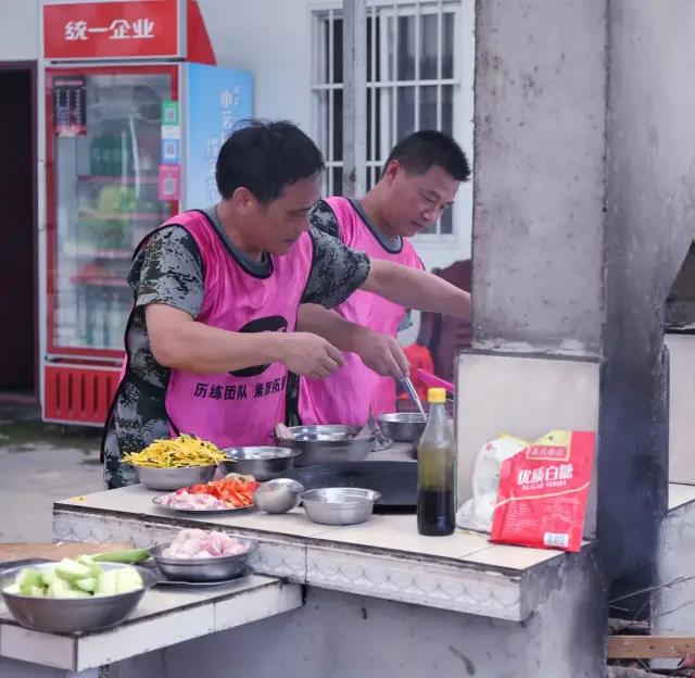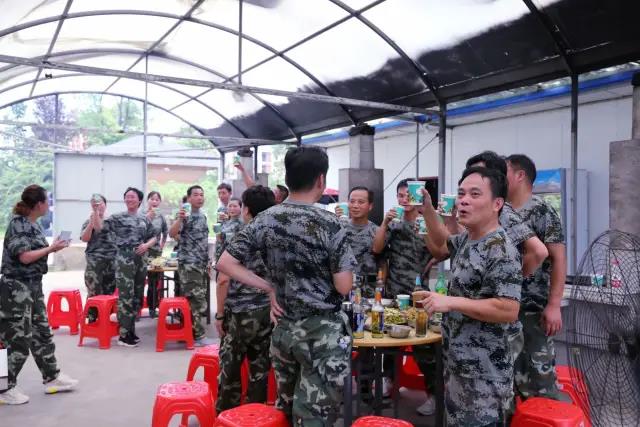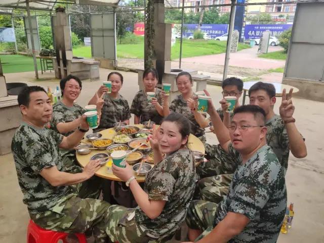 拓展活動結(jié)束以后,大家更開心的就是野炊大鍋灶了。這是一個釋放壓力,放飛心情、展示絕活的時機(jī),十人一組,四個小組大家分工明確,有專門摘菜和洗菜的,有專門燒火的,還有專門配菜的,每個組一個灶臺兩口鍋,新鮮的食材,四葷六素,大鍋灶的現(xiàn)場就是廚藝比拼的戰(zhàn)場,哇!紅燒雞、糖醋魚、油燜大蝦、五花肉燒茄子,還有涼拌黃瓜、素炒南瓜絲、土豆片、香菇白菜、西紅柿雞蛋湯。更重要的是吃到了多少年想吃但吃不到的大鍋的鍋巴。今天上午也是運(yùn)動和快樂到了極致,大家的食欲大增,開懷暢飲,快樂滿滿。