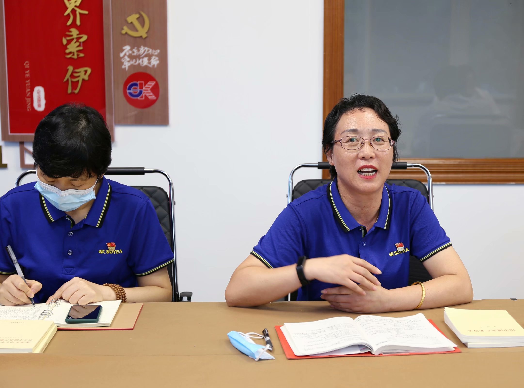 最后工委副書記王燊指出:各位黨員的發(fā)言結(jié)合本職工作,談感想、說體會、議方向,說明索伊廣大黨員的素質(zhì)很高,學(xué)習(xí)力很強。希望大家要認(rèn)真學(xué)習(xí)好、深入貫徹好、全面落實好習(xí)近平總書記“七一”重要講話精神,不斷地深化舉措,在實際工作中形成非公企業(yè)黨建品牌,為企業(yè)的發(fā)展凝聚力量。